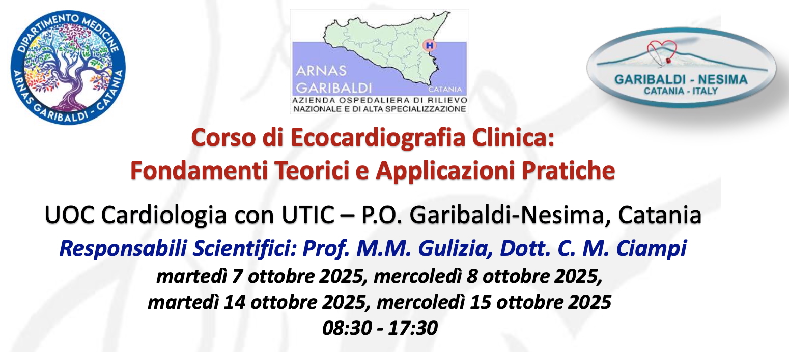 Tra la seconda e la terza settimana di ottobre si terrà, presso il P.O. Garibaldi-Nesima di Catania (Aula magna di Endocrinologia piano -1), un Corso Ecocardiografia color Doppler di alta formazione, interamente dedicato alla metodica ecocardiografica. Responsabili scientifici dell’iniziativa sono il Prof. Michele M. Gulizia, Direttore del Dipartimento delle Medicine e dell’U.O.C. di Cardiologia con UTIC del P.O. Nesima, e il Dott. Claudio M. Ciampi, dirigente medico presso l’U.O.C. di Cardiologia con UTIC del P.O. Nesima. Il Corso, articolato in quattro giornate – martedì 7 ottobre 2025, mercoledì 8 ottobre 2025, martedì 14 ottobre 2025 e mercoledì 15 ottobre 2025 – per un totale di 26 ore, vedrà coinvolti relatori esperti provenienti da tutto il territorio nazionale. Il programma prevede un percorso formativo completo, sui fondamenti teorici e sulle applicazioni pratiche dell’ecocardiografia, con ampio spazio a esercitazioni su ecocardiografi di ultima generazione, prove pratiche dal vivo e analisi di casi clinici con refertazione guidata. L’obiettivo è fornire ai partecipanti strumenti teorici e operativi per identificare anomalie cardiache strutturali e funzionali, valutare la funzione emodinamica e applicare correttamente la metodica ecocardiografica nei diversi scenari clinici. Tale iniziativa rappresenta la prima tappa di un percorso di Formazione in Ecocardiografia promosso dalla U.O.C. di Cardiologia con UTIC del P.O. Garibaldi-Nesima, con il patrocinio del Dipartimento delle Medicine dell’ARNAS Garibaldi. Il superamento del Corso costituirà prerequisito per l’accesso a un successivo Corso Avanzato interamente dedicato alla parte pratica, finalizzato a consolidare le competenze operative necessarie per l’utilizzo autonomo della metodica. Il Corso è accreditato con 25,8 crediti ECM (Evento n. 11515, Provider n. 397) e rientra tra le attività di formazione continua promosse dall’ARNAS Garibaldi, con l’obiettivo di favorire lo sviluppo di competenze avanzate e di migliorare la qualità dell’assistenza ai pazienti attraverso l’uso appropriato dell’imaging ecocardiografico. Si segnala che, per poter partecipare al corso, è necessario confermare la propria presenza a tutte le quattro giornate previste. La mancata frequenza anche ad una sola giornata comporterà l’esclusione dal corso e l’impossibilità di reiscriversi alle future edizioni. Il corso sarà attivato solo al raggiungimento di un numero minimo di 30 iscritti.